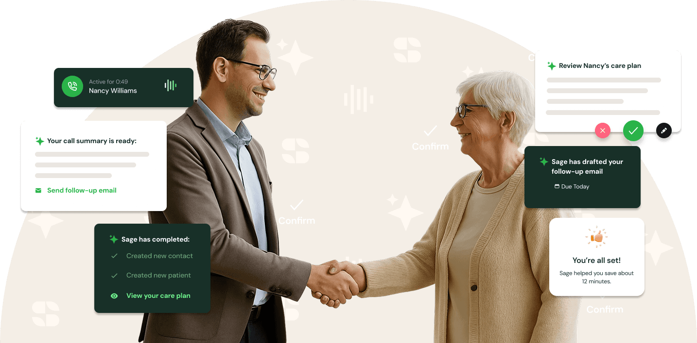 Sage translates basic commands into structured data and instantly files the right forms in Wellsky. Perfect data retention, with no manual data entry required